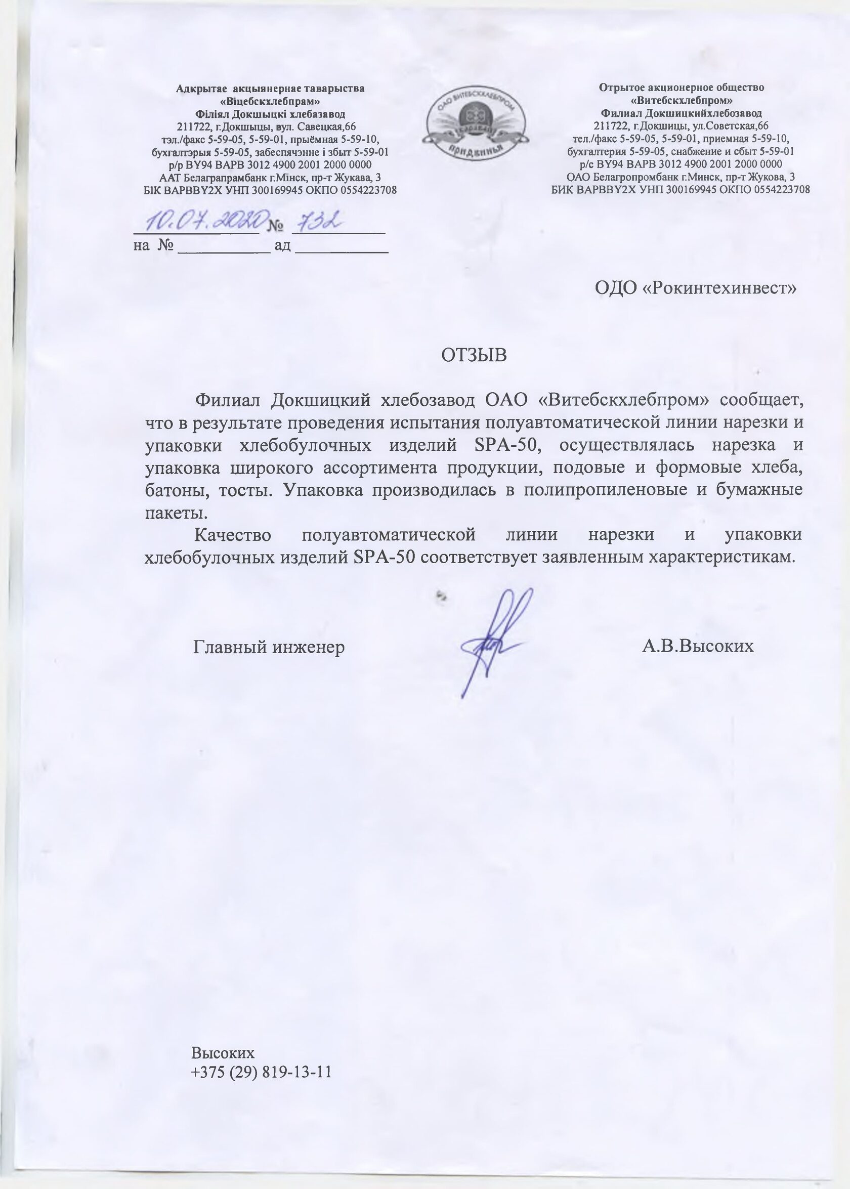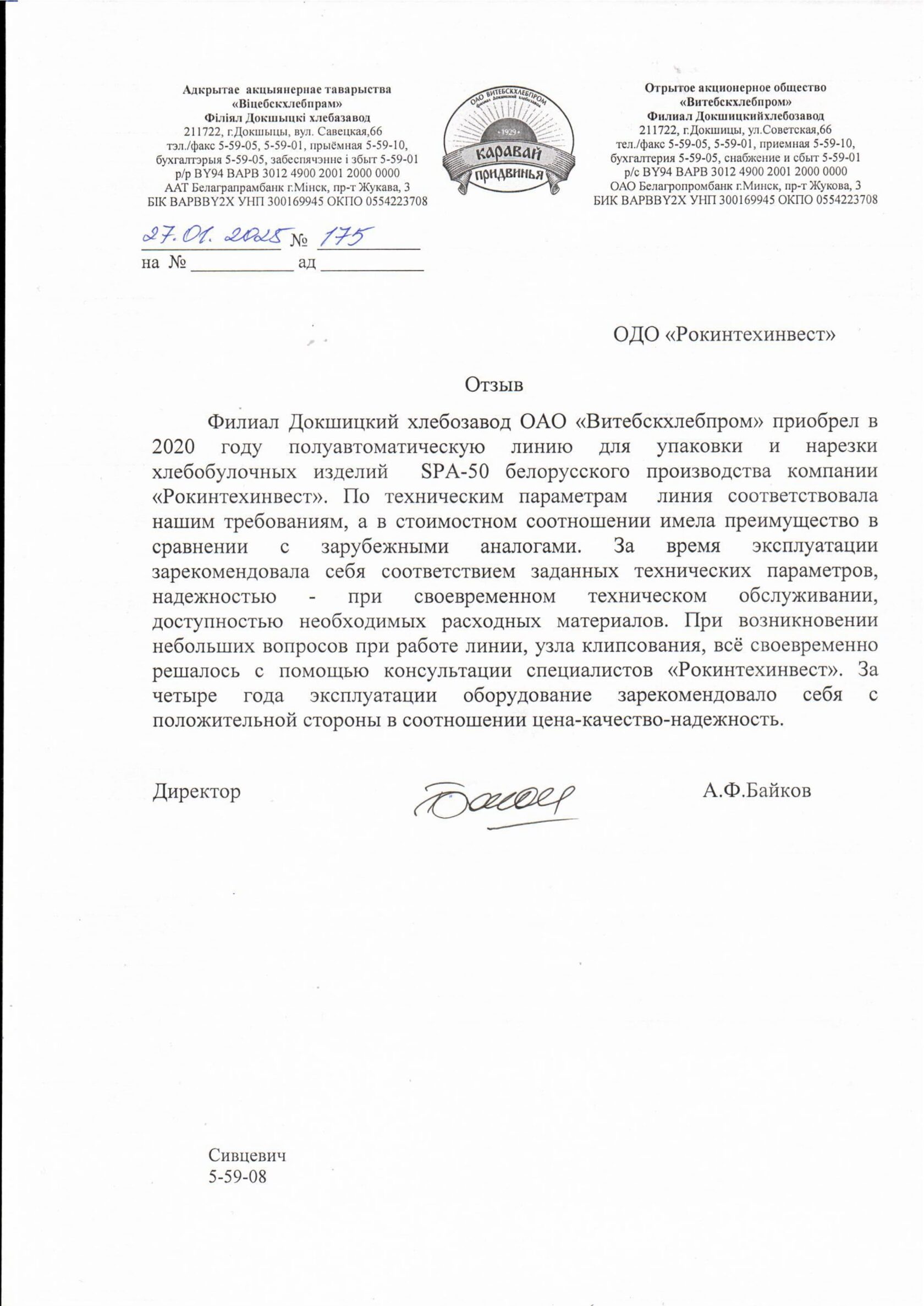 Vitebskkhlebprom JSC — Dokshitsy Bakery Branch