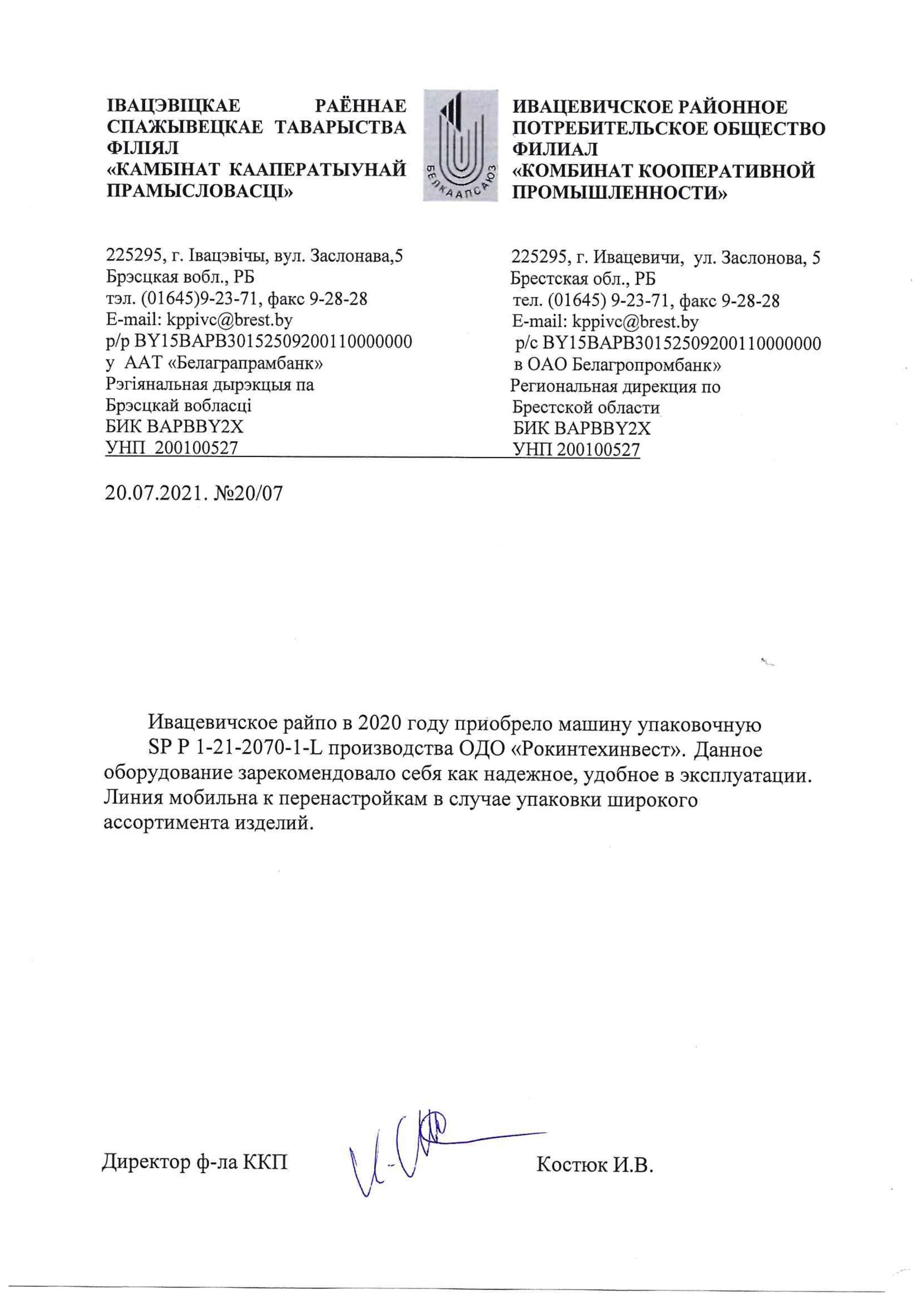 Ivatsevichi District Consumer Society — Cooperative Industry Complex Branch