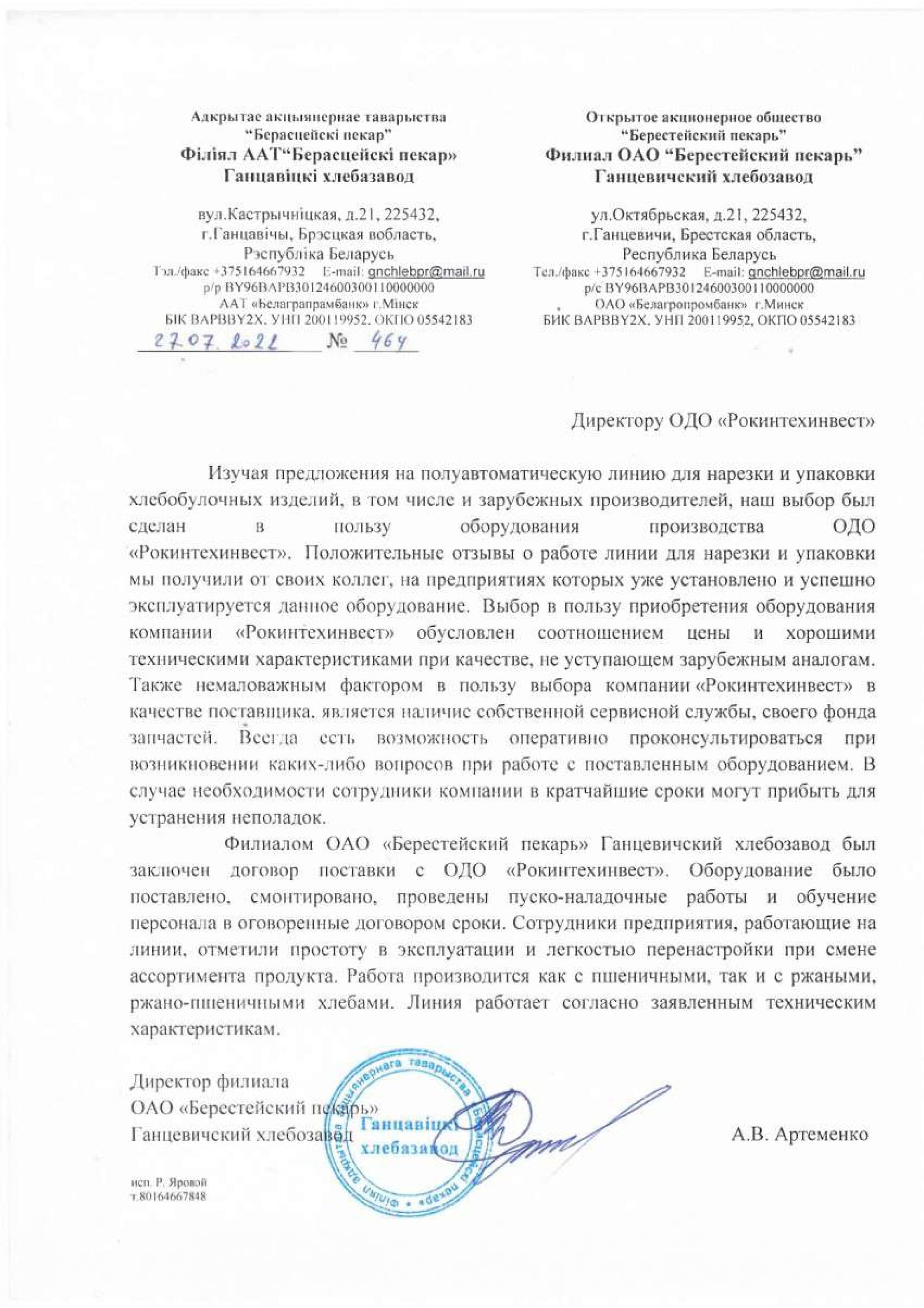 Beresteysky Pekar JSC — Gantsevichi Bakery Branch